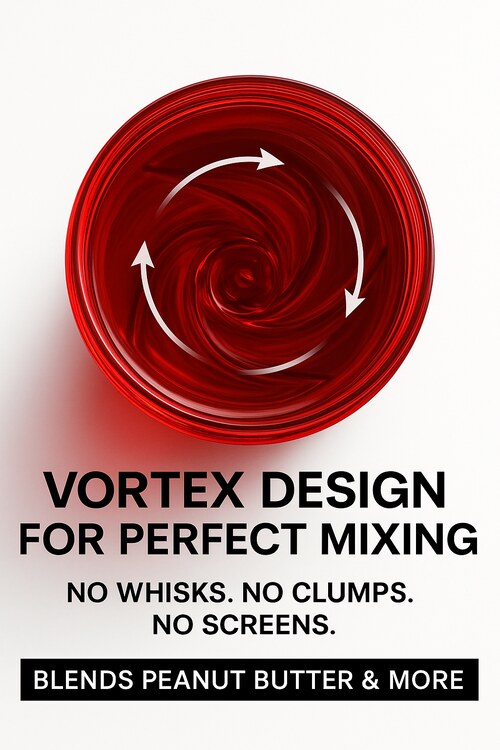 The secret lies in its specially shaped hexagonal base, which creates a powerful natural vortex every time you shake. This swirling motion pulls ingredients into a smooth blend — no whisks, no screens, and no shaking fatigue.